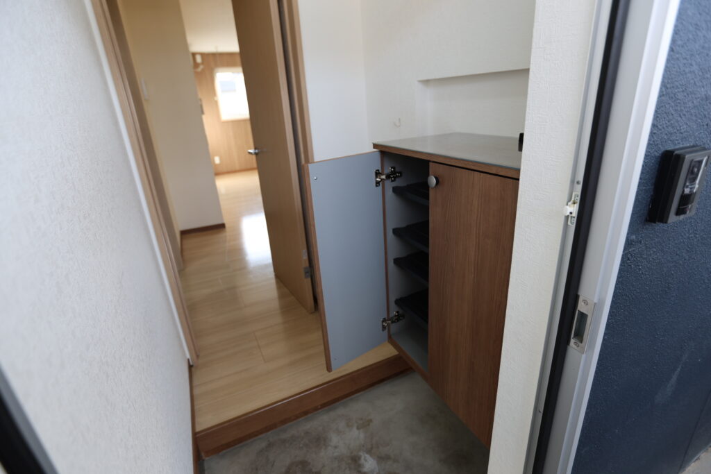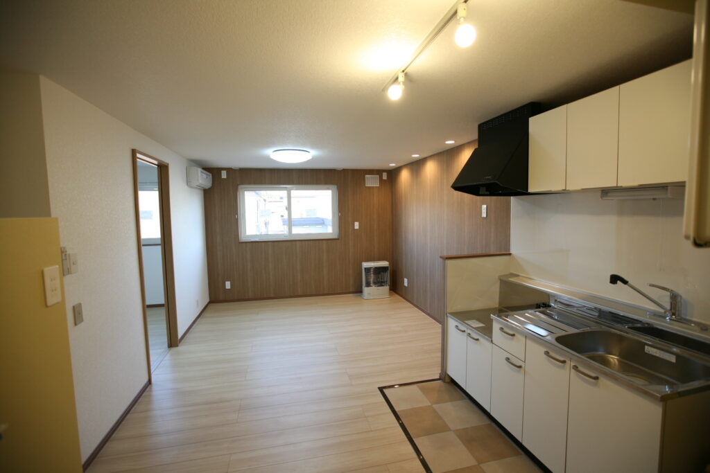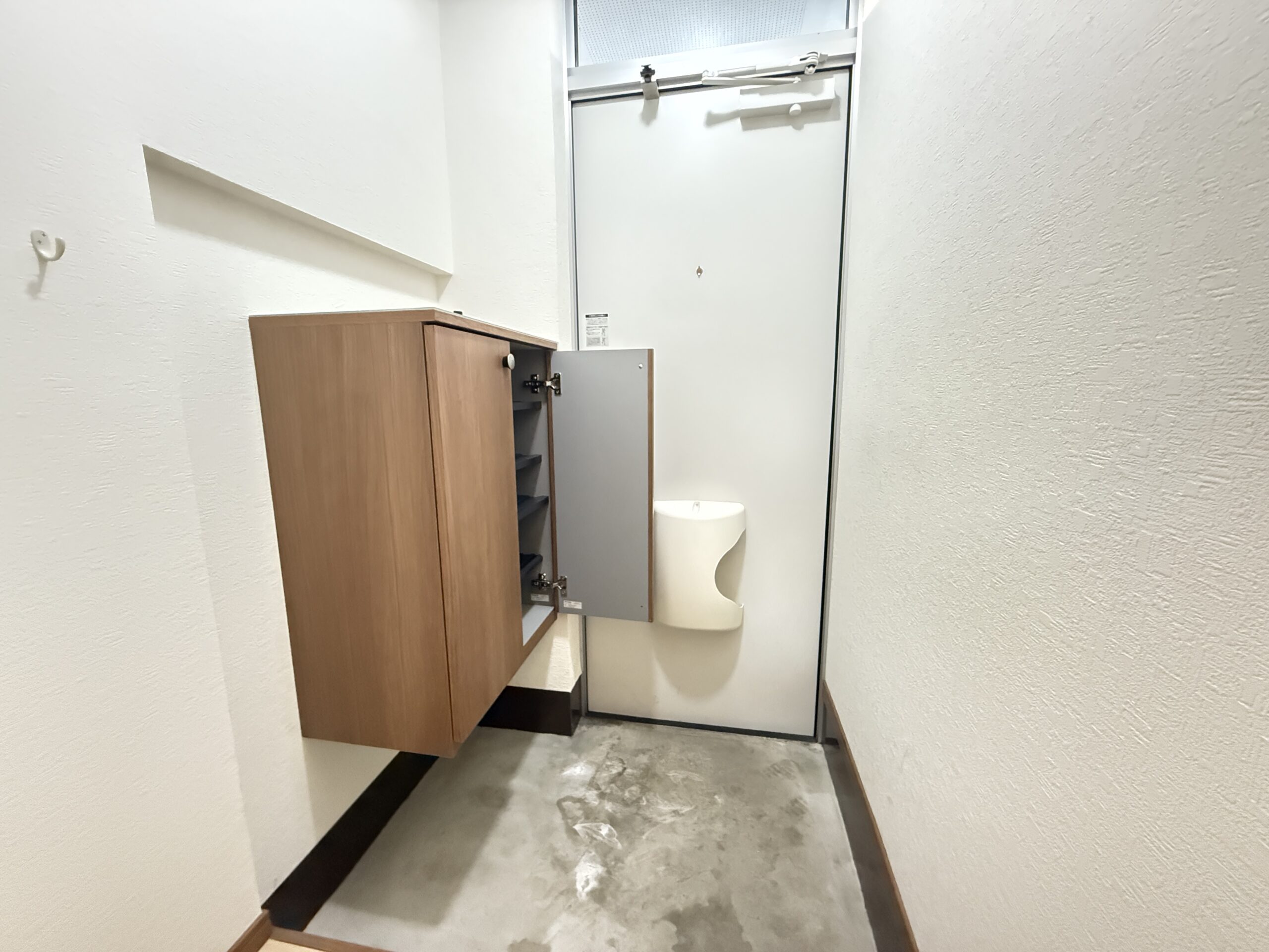 | シューズボックス、FF式ストーブ、TVモニターホン、エアコン、ダウンライト照明、流し台(完全美装済み)、シャワー洗浄付きトイレ(完全美装済み)、独立洗面化粧台(完全美装済み)、ガスコンロ対応、複層ガラスサッシ |