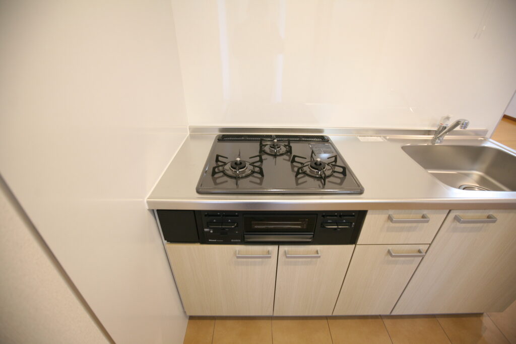 Wi-Fi設備、シューズボックス、灯油暖房、TVモニターホン、エアコン、ダウンライト照明、システムキッチン(完全美装済み)、シャワー洗浄付きトイレ(完全美装済み)、独立洗面化粧台(完全美装済み)